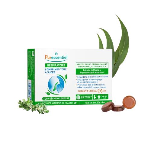 Ce dispositif médical associe les bienfaits du Plantain, du Thym sauvage et de la vitamine C . Cette formule naturelle apaise la toux sèche et irritante en calmant les irritations et démangeaisons de la gorge. En cas de toux grasse, ces comprimés facilitent l'expectoration, aidant à dégager les voies respiratoires et à éliminer les sécrétions.