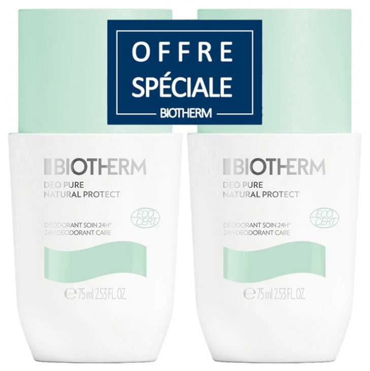 Biotherm Déo Pure Natural Protect Déodorant Soin 24H Bio Roll-On Lot de 2 x 75 ml