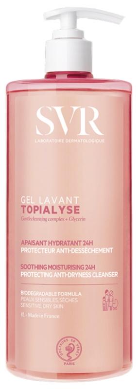 SVR Topialyse Cleansing Gel 1L is a gentle soap-free anti-dryness cleansing gel that gently cleanses and protects sensitive and dry skin on the face and body of the whole family from birth (except premature babies).