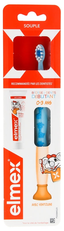 Elmex Soft Beginner Toothbrush 0-3 Years + Mini Anti-Caries Toothpaste 0-6 Years 12 ml - Color: Sky Blue - Blue