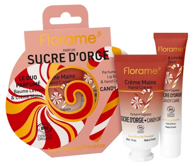 Florame Sucre d'Orge Coffret Crème Mains 30 ml + Baume Lèvres Bio 15 ml offre un duo parfumé qui ravivera vos souvenirs d'enfance.