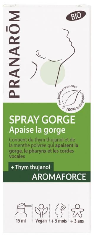 Pranarôm Aromaforce Throat Spray Soothes the Throat Organic 15ml is  a spray food supplement to soothe the throat.