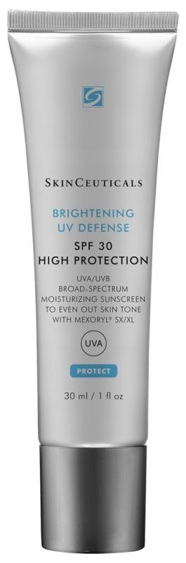 SkinCeuticals Protect Brightening UV Defense SPF 30 30 ml est une crème solaire hydratante haute protection à large spectre anti-UVA/UVB au Mexoryl qui unifie le teint.
