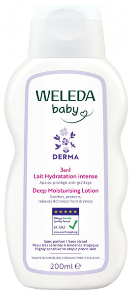 Weleda Baby Derma Lait Hydratation Intense 3en1 Sans Parfum 200 ml
